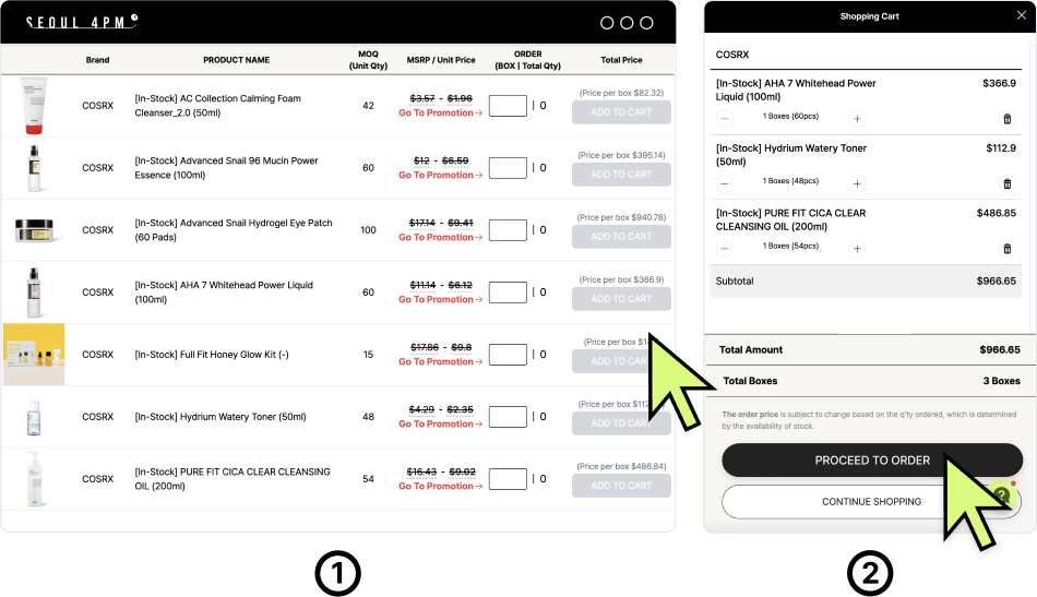 Add your selected items to cart by inputting the number of boxes you want to order, then click on "Add to Cart".