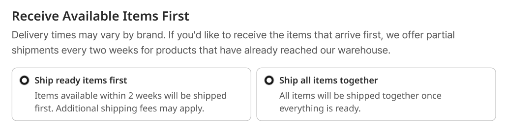 Pre-order items, which are sourced from brands and suppliers only after an order request and deposit payment are placed, require additional lead time before shipping, which is usually 2 to 4 weeks for sourcing and preparation.